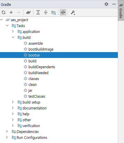 2. Gradle이 오픈되면 아래의 bootJar 클릭
